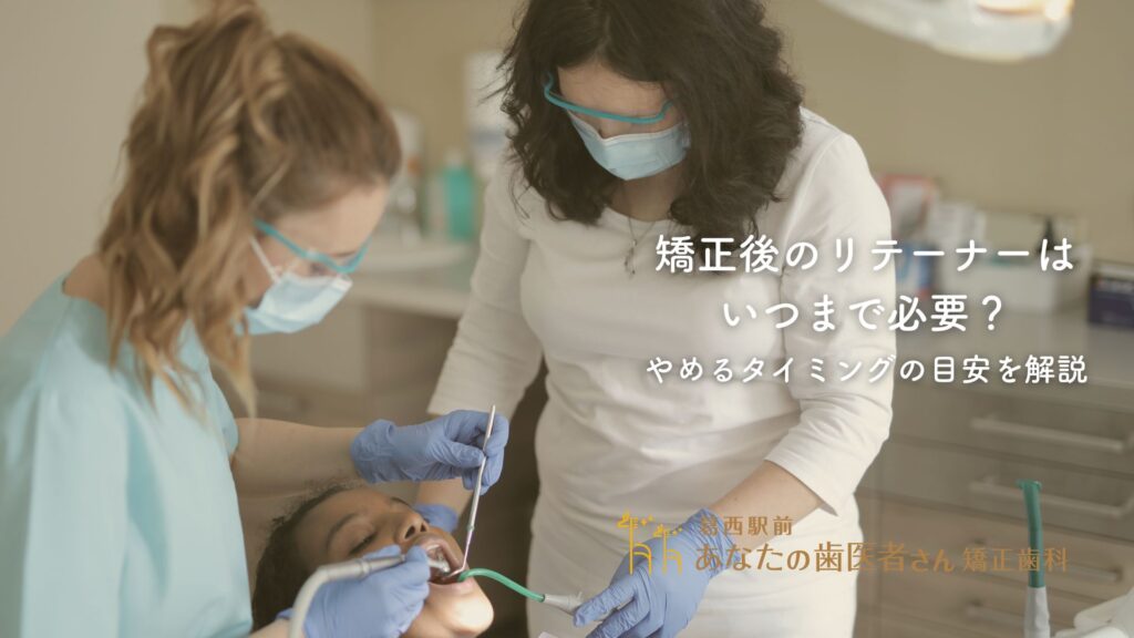 この記事では、矯正治療後のリテーナー装着期間の目安や、段階的な減らし方、やめるタイミングの判断基準について、歯科医師の視点から詳しく解説します。後戻りを防ぎ、美しい歯並びを長期的に維持するための正しい知識を身につけていただければ幸いです。