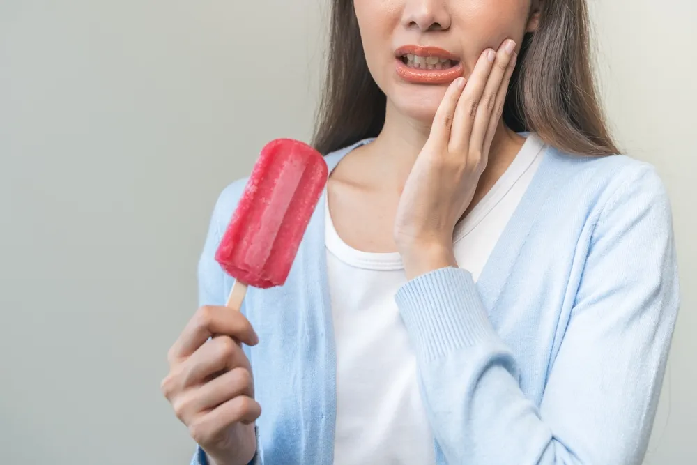 歯が折れると、内部の象牙質が露出したり、神経に近い部分まで刺激が伝わりやすくなったりします。そのため、冷たい飲み物や甘いものがしみる症状が出やすくなります。最初は軽い違和感でも、刺激が続くことで痛みが強くなることがあります。